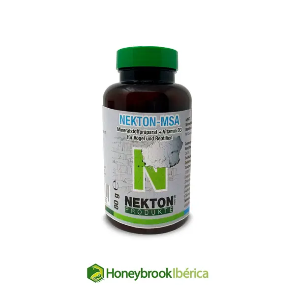 NEKTON-MSA es un suplemento mineral con calcio, fósforo y vitamina D3, diseñado para fortalecer huesos, pico y plumaje en aves. Especialmente indicado durante el crecimiento, la cría y la formación de la cáscara del huevo.